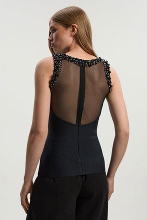 Viscose Blend Sleeveless Knitted Asymmetric Hem Top With Sparkle Sheer Detail