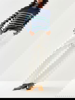 Contrast Tipping Long Sleeve Fine Knit Top In Navy