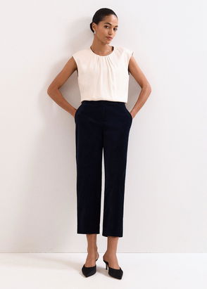 Straight Fit Velvet Trousers, Dark Navy/Black