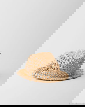 Patterned Band Paper Straw Fedora Hat, Natural