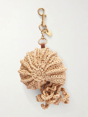 Hermit Crab Leather-trimmed Gold-tone And Raffia Bag Charm