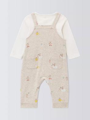 Baby Teddy Bodysuit And Dungarees Set, Natural