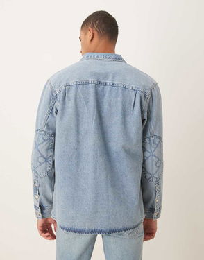 Jeans 90s Denim Overshirt With Logo Pocket Details In Stone Wash