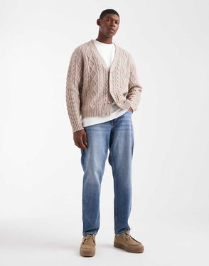 Valencia Cable Knit Cardigan In Stone Marl