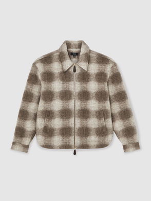 Brushed Check Zip-Through Overshirt With Wool In Ecru/Brown