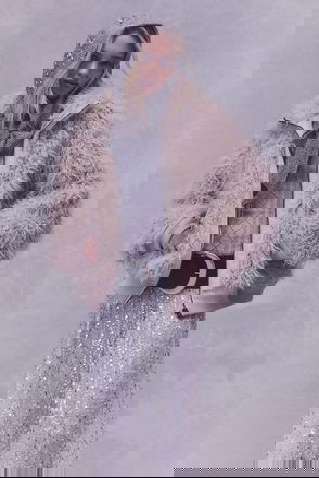 Plunge-Neck Split-Sleeve Jumpsuit In Ivory