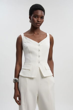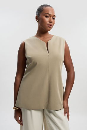 Plus Size Polished Viscose Sleeveless Tailored Zip Front Top