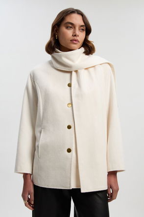 Tall Brushed Wool Detachable Scarf Tailored Short Coat