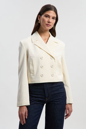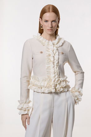 Tall Figure Form Bandage Knit Jacket With Woven Ruffle Trim
