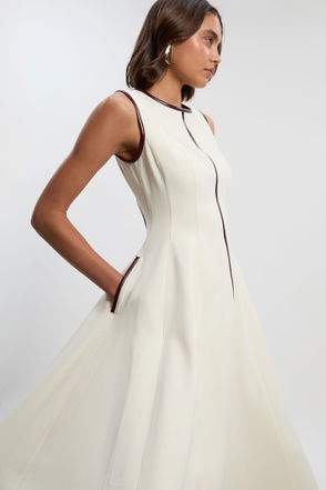 Tailored Crepe Tipped Tailored Midi Shirt Dress