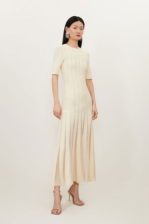 Petite Viscose Blend Filament Full Skirt Knit Midi Dress