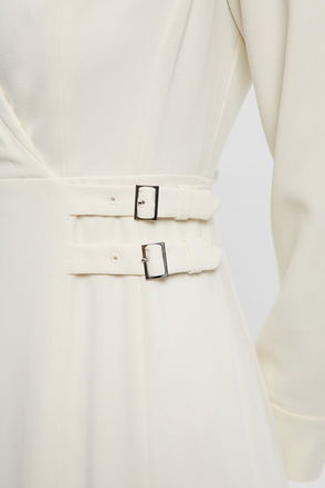 Tailored Crepe Buckle Waist Midi Shirt Dress