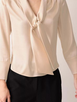 Tie-detailed Crystal-embellished Silk-blend Satin Blouse