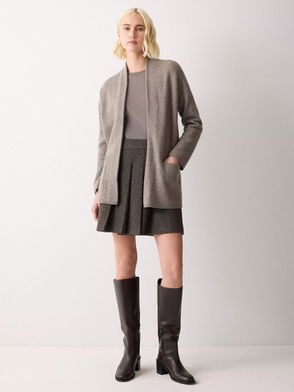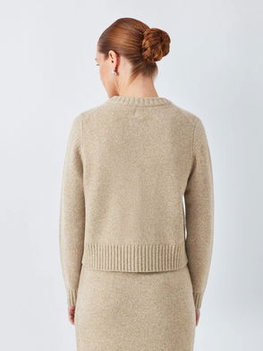 Marl Wool Blend Crew Neck Cardigan, Natural