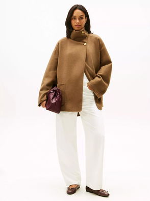 Wool Blend Funnel Neck Coat, Nordic Taupe