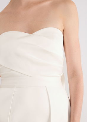Sheer-Panel Wide-Leg Belted Jumpsuit In Ivory