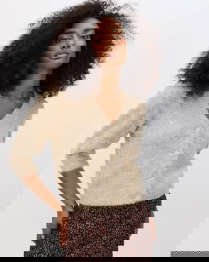 Metallic Craft-Stitch Rib-Knit Top In Champagne