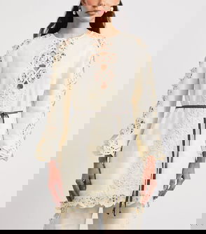 Cotton And Wool Funnel-Neck Knit Top In Neutral