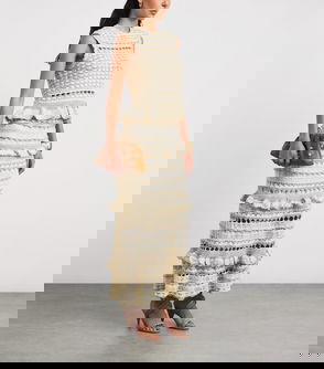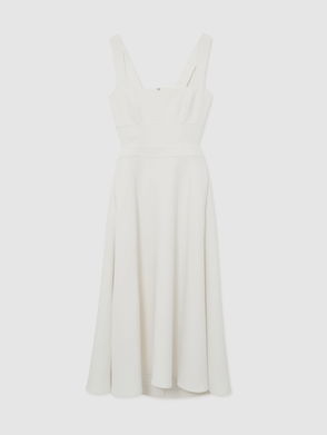 Waisted Cut-Out Twill Midi Dress In Ivory