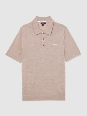 Merino Wool Logo Polo Shirt In Wheat Melange