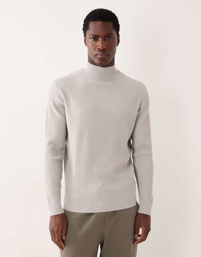 Classic Ribbed High Neck Jumper In Ice Grey