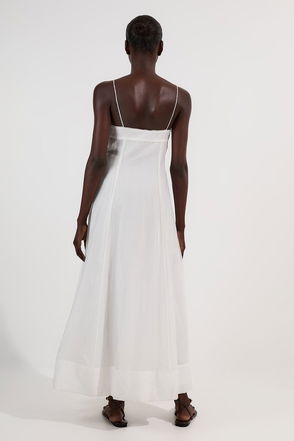 Premium Linen Twill Topstitch Woven Sleeveless Midi Dress