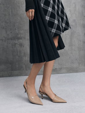 Patent Stiletto-Heel Pointed-Toe Slingback Pumps
