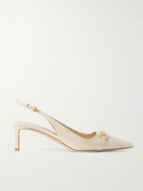 Demi Leather-Trimmed Crystal-Embellished Mesh Slingback Pumps