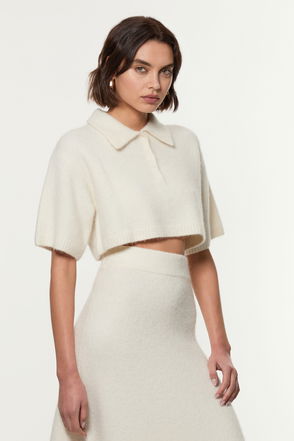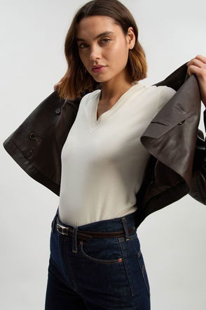 Viscose Blend V Neck Knitted Short Sleeve Top