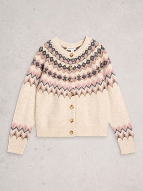 Light Brown & Red Geometric Knitted Cardigan