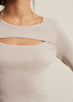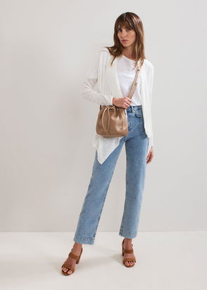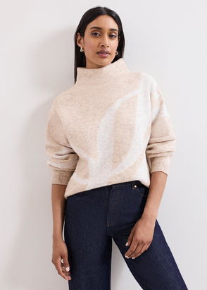 Cotton & Wool Blend Button Neck Jumper, Natural