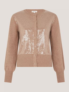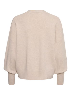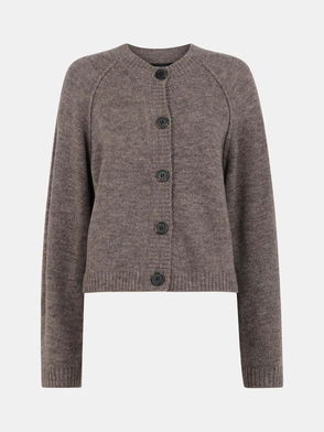 Marl Wool Blend Crew Neck Cardigan, Natural
