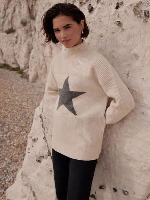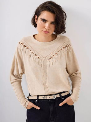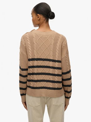 Wool Blend Aran Flag Cable Knit Jumper, Ivory