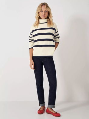 Stripe Ribbed Roll Neck Jumper, Ivory