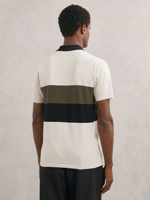 Cotton Mix Knitted Rib Polo Shirt In Ecru
