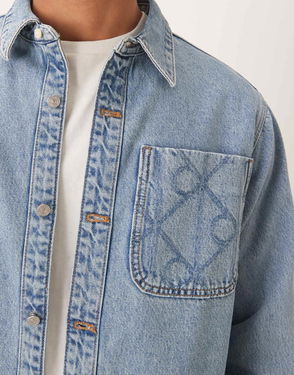Jeans 90s Denim Overshirt With Logo Pocket Details In Stone Wash