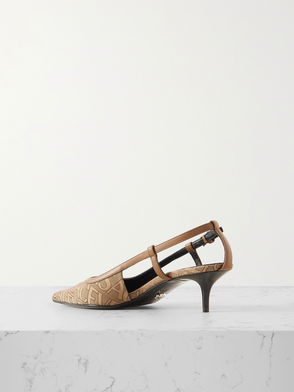Leather-trimmed Logo-jacquard Canvas Slingback Pumps