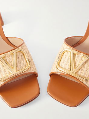VLogo Leather-trimmed Raffia Sandals