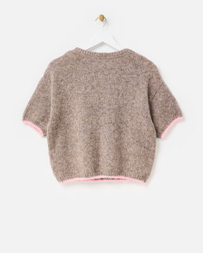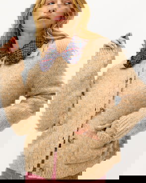 Brown & Red Geometric Button Up Knitted Bomber Jacket