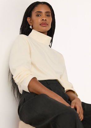 Wool Funnel-Neck Half-Button Jumper In Neutral