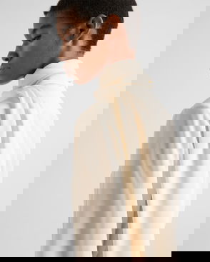 Cotton And Wool Funnel-Neck Knit Top In Neutral