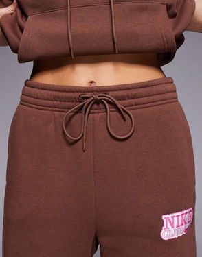 Phoenix Fleece High Waisted Oversized Wide Leg Joggers In Brown