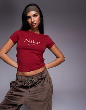 Gym Life Swoosh Cropped T-shirt In Burgundy