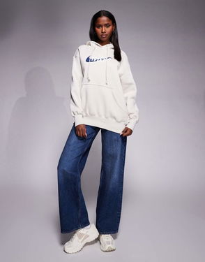 Phoenix Fleece Oversized Logo Hoodie In Off White