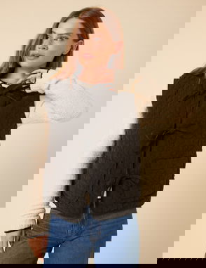 Tie Front Floral Quilted Gilet Containing TENCEL™ Lyocell, Black