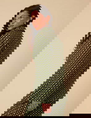 NC X Lisou Black And Lime Green Jacquard Checkerboard Fitted Blazer