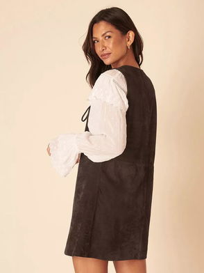 V-Neck Pure Suede Pinafore Mini Dress, Brown