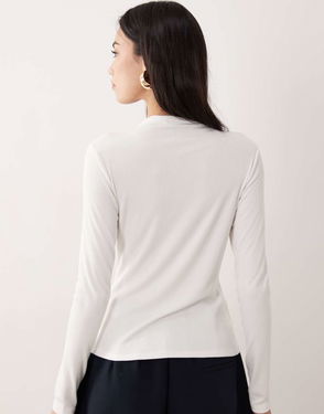 Ribbed Grown On Neck Long Sleeved Top