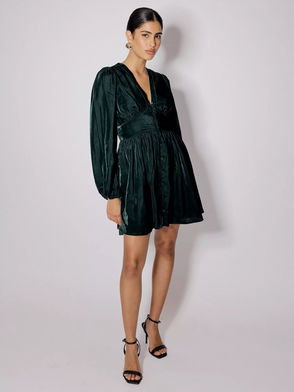 Fleur Velvet Ruffle Sleeve Mini Dress In Dark Green
