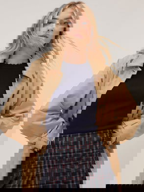 Brown Ribbed Button Down Jersey Top